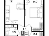 В продаже 1-комнатная квартира от застройщика! Мкр. «DOGMA PARK» г. Краснодар, Литер 17 Срок сдачи: 4 кв. 2027, общей площадью 37 кв.м., на 16 этаже.