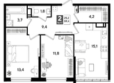 В продаже 2-комнатная квартира от застройщика! Мкр. «DOGMA PARK» г. Краснодар, Литер 20 Срок сдачи: 4 кв. 2027, общей площадью 59.4 кв.м., на 10 этаже.