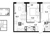 В продаже 2-комнатная квартира от застройщика! Мкр. «DOGMA PARK» г. Краснодар, Литер 21 Срок сдачи: 4 кв. 2027, общей площадью 57 кв.м., на 14 этаже.