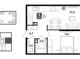 В продаже 1-комнатная квартира от застройщика! Мкр. «DOGMA PARK» г. Краснодар, Литер 22 Срок сдачи: 4 кв. 2027, общей площадью 45.4 кв.м., на 9 этаже.