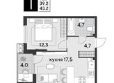 Срок сдачи: 1 кв. 2026, общей площадью 43.2 кв.м., на 2 этаже.