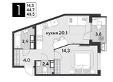 Срок сдачи: 1 кв. 2026, общей площадью 48.5 кв.м., на 18 этаже.