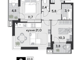 Срок сдачи: 4 кв. 2025, общей площадью 66.9 кв.м., на 2 этаже.