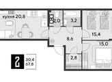 Срок сдачи: 1 кв. 2026, общей площадью 67.8 кв.м., на 8 этаже.