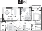 Срок сдачи: 4 кв. 2025, общей площадью 81.7 кв.м., на 3 этаже.