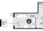 Срок сдачи: 2 кв. 2026, общей площадью 25.1 кв.м., на 2 этаже.