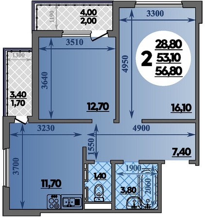 Общая площадь квартиры — 56.8 кв.м. Тип дома — монолит-кирпич. Компания-застройщик — ВКБ-Новостройки.