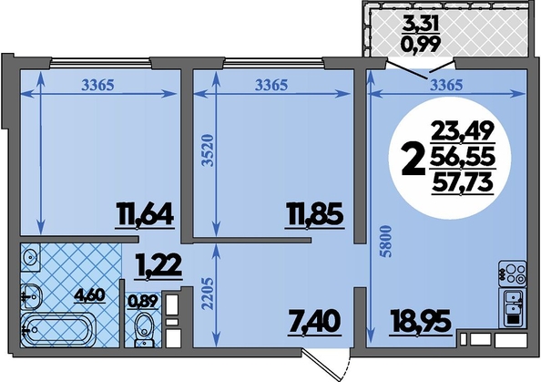 Общая площадь квартиры — 57.54 кв.м. Тип дома — панельный. Компания-застройщик — ВКБ-Новостройки.