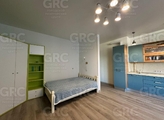 Просторная однокомнатная квартира площадью 65 м² расположена на 14-м этаже 17-этажного дома и привлекает своим современным ремонтом и полной меблировкой.