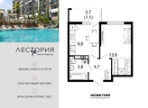 Продается квартира в жилом комплексе бизнес-класса «Лестория». В составе ЖК предусмотрена собственная аквазона площадью 473 квадратных метра с двумя подогреваемыми бассейнами, что соответствуют стандартам бизнес-класса.