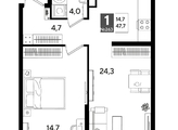 В продаже 1-комнатная квартира от застройщика! Мкр. «DOGMA PARK» г. Краснодар, Литер 13 Срок сдачи: 4 кв. 2027, общей площадью 47.7 кв.м., на 17 этаже.