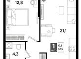 В продаже 1-комнатная квартира от застройщика! Мкр. «DOGMA PARK» г. Краснодар, Литер 15 Срок сдачи: 4 кв. 2027, общей площадью 42 кв.м., на 2 этаже.