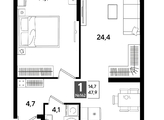 В продаже 1-комнатная квартира от застройщика! Мкр. «DOGMA PARK» г. Краснодар, Литер 20 Срок сдачи: 4 кв. 2027, общей площадью 47.9 кв.м., на 4 этаже.