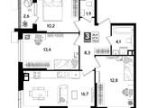В продаже 3-комнатная квартира от застройщика! Мкр. «DOGMA PARK» г. Краснодар, Литер 20 Срок сдачи: 4 кв. 2027, общей площадью 70 кв.м., на 4 этаже.