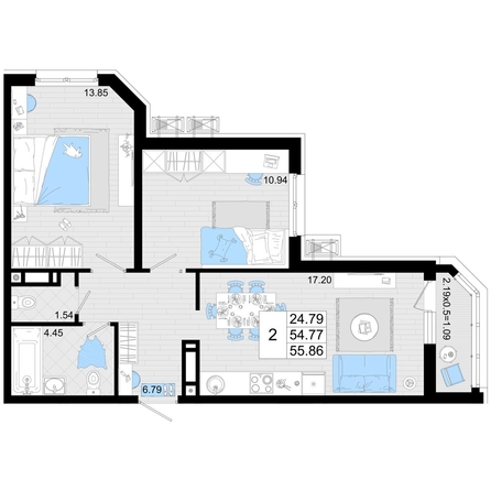 Общая площадь квартиры — 55.86 кв.м. Тип дома — монолит-кирпич. Компания-застройщик — ССК.