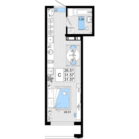 Общая площадь квартиры — 31.57 кв.м. Тип дома — монолит-кирпич. Компания-застройщик — ССК.