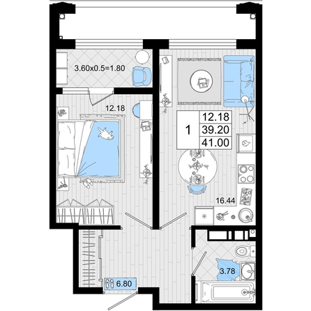 Общая площадь квартиры — 41 кв.м. Тип дома — монолит-кирпич. Компания-застройщик — ССК.