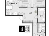 Срок сдачи: 4 кв. 2025, общей площадью 93.4 кв.м., на 2 этаже.
