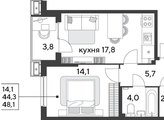 Срок сдачи: 1 кв. 2026, общей площадью 48.1 кв.м., на 2 этаже.