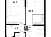 В продаже 1-комнатная квартира от застройщика! Мкр. «DOGMA PARK» г. Краснодар, Литер 18 Срок сдачи: 4 кв. 2027, общей площадью 47.9 кв.м., на 4 этаже.