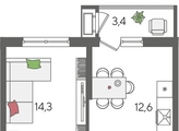 В продаже 1-комнатная квартира от застройщика! ЖК «Рекорд» 2 очередь, г. Краснодар, Литер 1 Срок сдачи: 4 кв. 2026, общей площадью 41.4 кв.м., на 20 этаже.