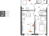 В продаже 2-комнатная квартира от застройщика! ЖК «Рекорд» 2 очередь, г. Краснодар, Литер 1 Срок сдачи: 4 кв. 2026, общей площадью 65.4 кв.м., на 2 этаже.