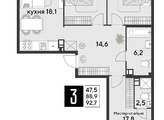 Срок сдачи: 4 кв. 2025, общей площадью 92.7 кв.м., на 7 этаже.