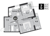 Срок сдачи: 2 кв. 2026, общей площадью 56.2 кв.м., на 8 этаже.
