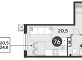 Срок сдачи: 2 кв. 2026, общей площадью 24.8 кв.м., на 9 этаже.