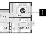 Срок сдачи: 2 кв. 2026, общей площадью 37.6 кв.м., на 15 этаже.