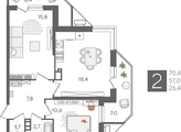 В продаже 2-комнатная квартира от застройщика! ЖК «Рекорд» 2 очередь, г. Краснодар, Литер 3 Срок сдачи: 4 кв. 2026, общей площадью 70.4 кв.м., на 11 этаже.