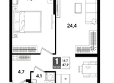 В продаже 1-комнатная квартира от застройщика! Мкр. «DOGMA PARK» г. Краснодар, Литер 20 Срок сдачи: 4 кв. 2027, общей площадью 47.9 кв.м., на 3 этаже.