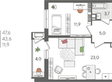 В продаже 1-комнатная квартира от застройщика! ЖК «Рекорд» 2 очередь, г. Краснодар, Литер 1 Срок сдачи: 4 кв. 2026, общей площадью 47.6 кв.м., на 3 этаже.