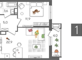 В продаже 1-комнатная квартира от застройщика! ЖК «Рекорд» 2 очередь, г. Краснодар, Литер 3 Срок сдачи: 4 кв. 2026, общей площадью 47.4 кв.м., на 22 этаже.