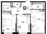 В продаже 2-комнатная квартира от застройщика! Мкр. «DOGMA PARK» г. Краснодар, Литер 20 Срок сдачи: 4 кв. 2027, общей площадью 59.4 кв.м., на 14 этаже.