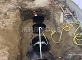 Дом монолитный стоит на плите (плита 30 см) , плита на сваях. Все разведено, вода, электрика.Газ в процессе. Канализация - септик.