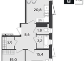 Срок сдачи: 1 кв. 2026, общей площадью 67.6 кв.м., на 18 этаже.