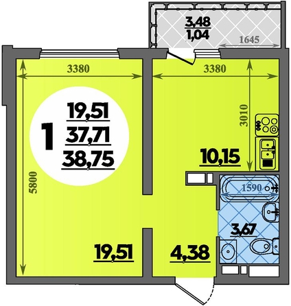 Общая площадь квартиры — 38.75 кв.м. Тип дома — панельный. Компания-застройщик — ВКБ-Новостройки.