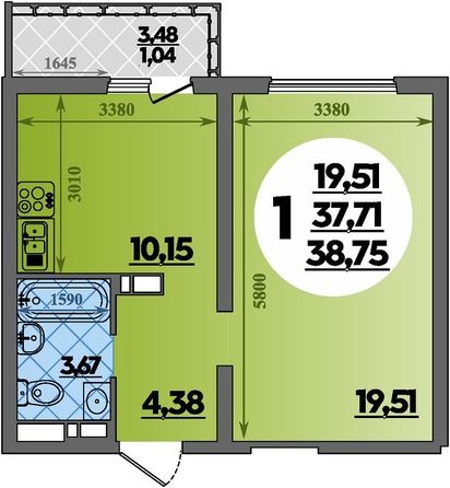 Общая площадь квартиры — 38.75 кв.м. Тип дома — панельный. Компания-застройщик — ВКБ-Новостройки.