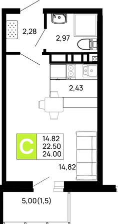 Общая площадь квартиры — 24 кв.м. Тип дома — монолит-кирпич. Компания-застройщик — ССК.