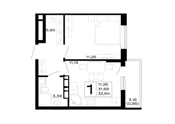 Общая площадь квартиры — 32.64 кв.м. Тип дома — монолит-кирпич. Компания-застройщик — ССК.