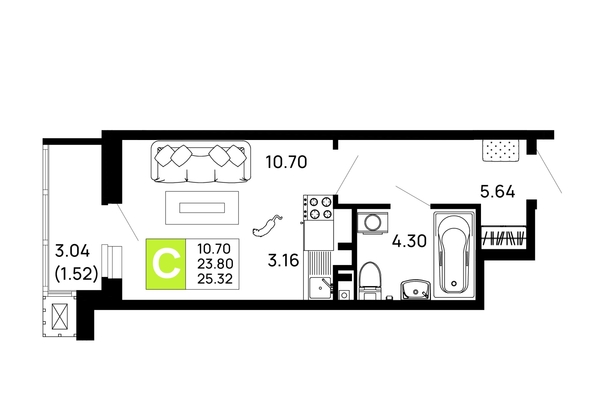 Общая площадь квартиры — 25.32 кв.м. Тип дома — монолит-кирпич. Компания-застройщик — ССК.