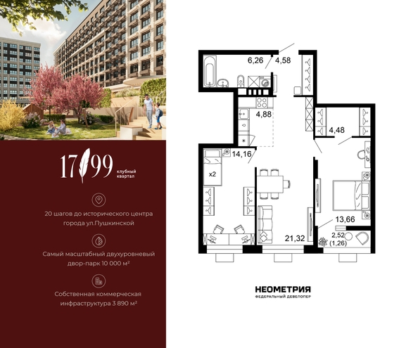 Продается квартира в клубном квартале «1799». Это истинный бизнес-класс в историческом центре Ростова. Особое сочетание уникальной локации и среды, где хочется создавать ту жизнь, которая подходит вам. Где каждое мгновение становится частью семейной коллекции лучших моментов.