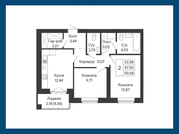 В данном решении представлена просторная и удобная планировка: двухкомнатная квартира с гардеробом в холле, смежными ванной и постирочной, гостевым санузлом и лоджией в большой кухне. Номер объявления SD61-69712.