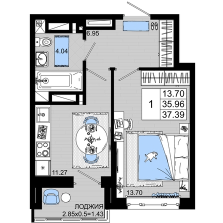 Общая площадь квартиры — 37.39 кв.м. Тип дома — монолит-кирпич. Компания-застройщик — ССК.