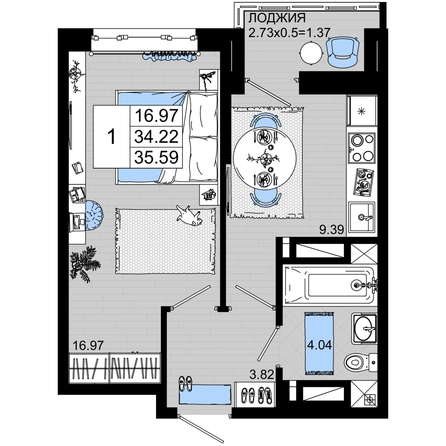 Общая площадь квартиры — 35.59 кв.м. Тип дома — монолит-кирпич. Компания-застройщик — ССК.