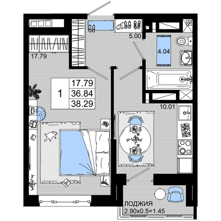 Общая площадь квартиры — 38.29 кв.м. Тип дома — монолит-кирпич. Компания-застройщик — ССК.