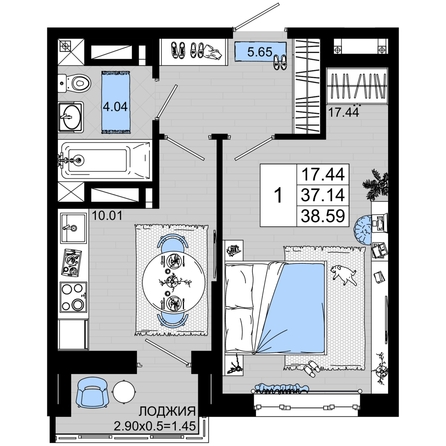 Общая площадь квартиры — 38.59 кв.м. Тип дома — монолит-кирпич. Компания-застройщик — ССК.