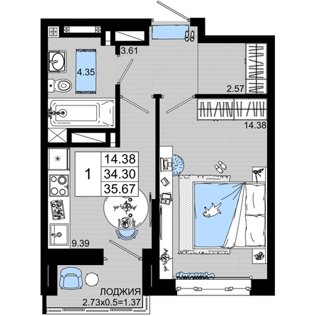 Общая площадь квартиры — 35.67 кв.м. Тип дома — монолит-кирпич. Компания-застройщик — ССК.
