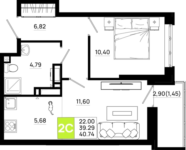 Общая площадь квартиры — 40.74 кв.м. Тип дома — монолит-кирпич. Компания-застройщик — ССК.